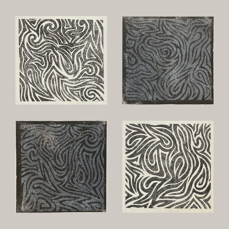 “25-11-29” (Swirl II), woodcut & monotype, unique print, 21 x 21 cm.