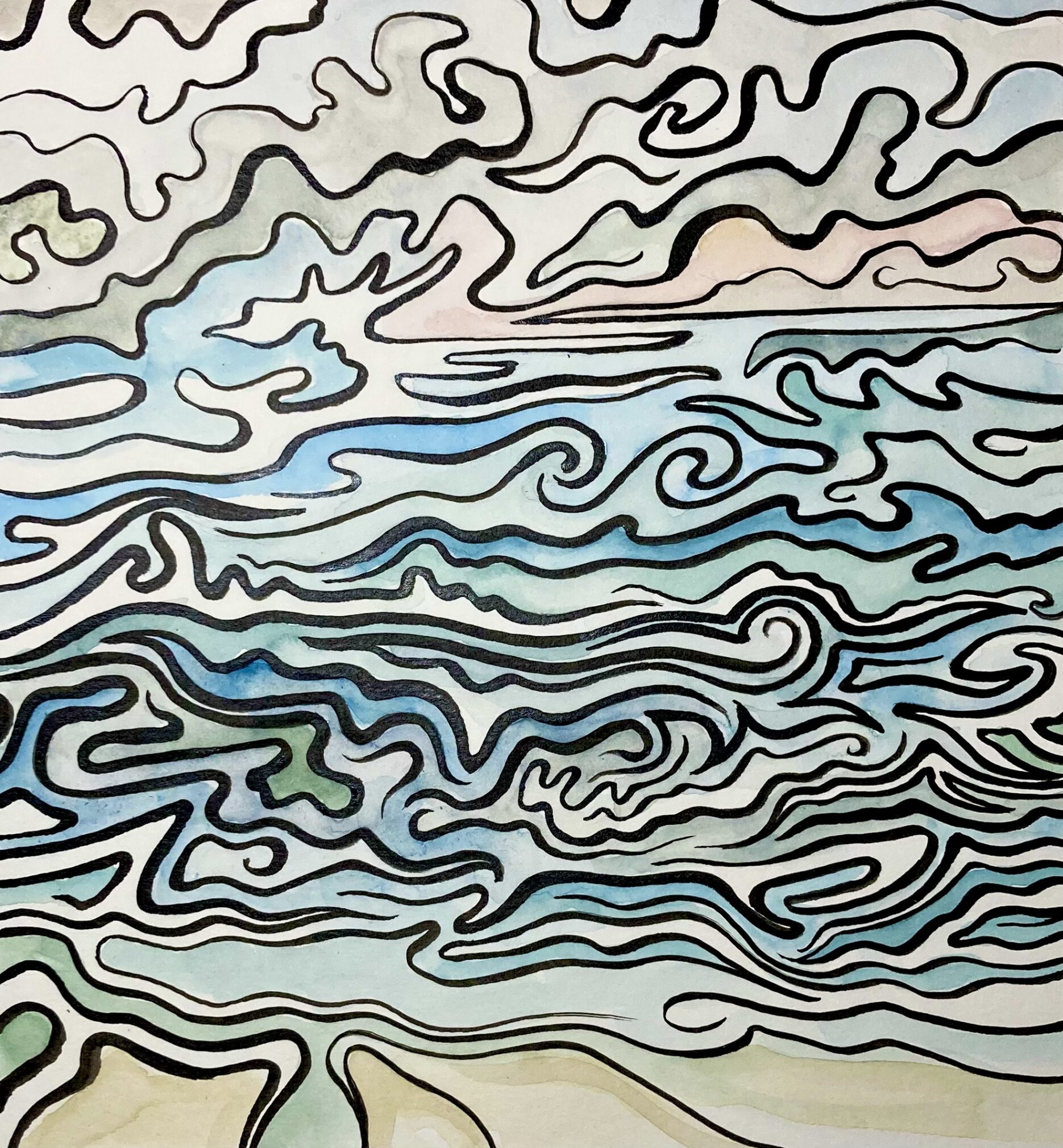 « Marine pattern », Ink and watercolor on paper, 21×23 cm