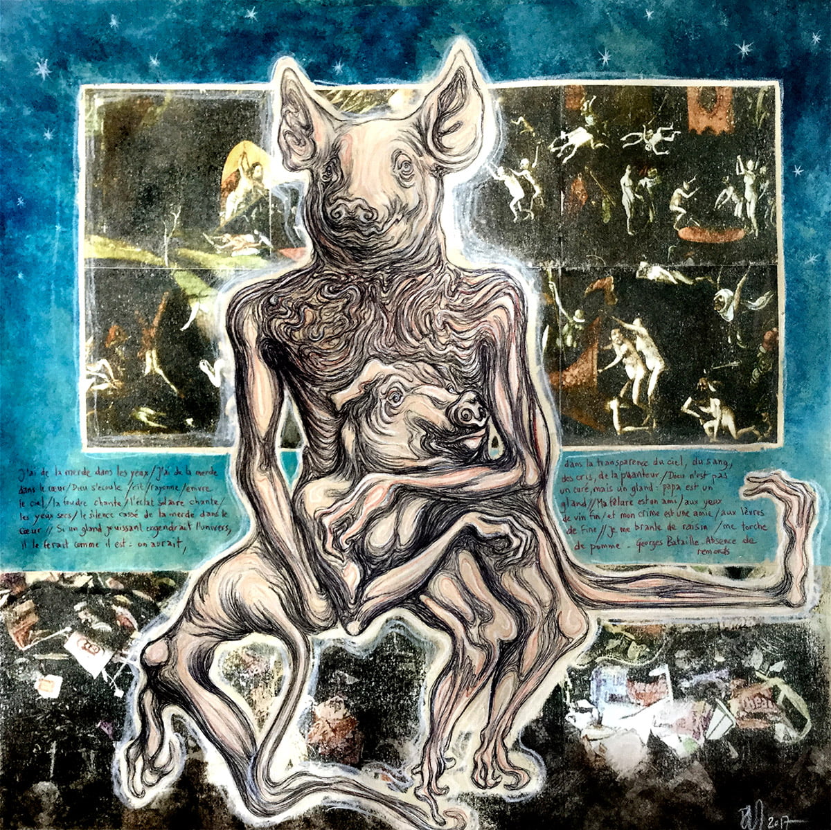 “Porcocrates” Mixed media on paper, 80cm x 80cm